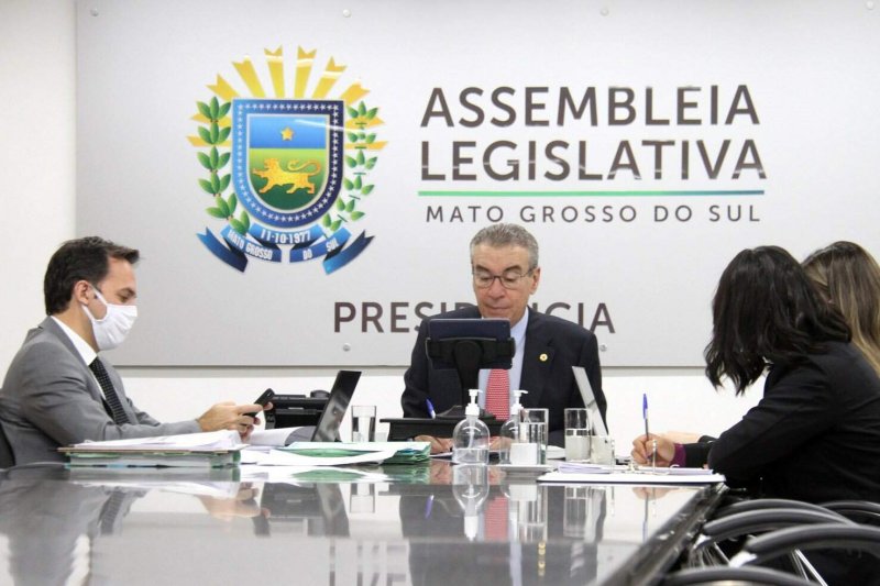 Presidente da Assembleia, Paulo Corrêa (PSDB), no centro, durante sessão virtual (Foto: Assessoria - ALMS)