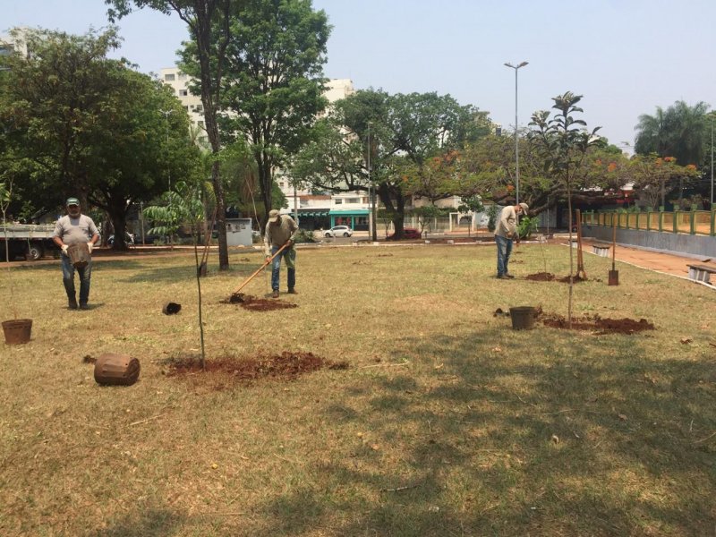 Como forma de arborizar os espaços verdes e aumentar a quantidade de árvores na Praça do Rádio, a Prefeitura de Campo Grande, por meio da Secretaria Municipal de Meio Ambiente e Gestão Urbana (Semadur), continua com o plantio de espécies nativas e frutíferas no local que recebe inúmeros eventos, além do passeio realizado pelas famílias.