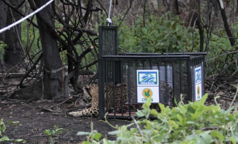 Transporte por terra, ar e água leva onça resgatada de volta ao Pantanal
