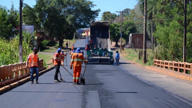 O recapeamento começou na confluência com a Avenida Gunter Hans (onde o recapeamento foi concluído na última terça-feira) e por volta das 11h já se aproximava da ponte sobre o Rio Anhandui.