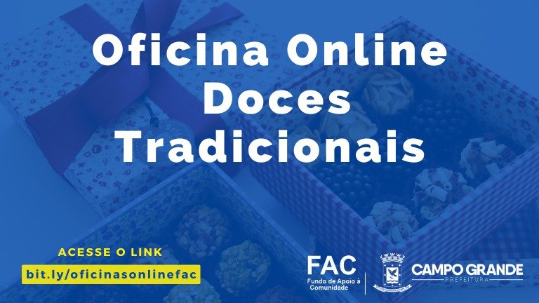 Após o sucesso da videoaula do curso de ovo de Páscoa de colher oferecido pelo Fundo de Apoio à Comunidade (FAC), parceria com a Secretaria de Assistência Social (SAS), já está disponível, no canal do Youtube do FAC a aula dos docinhos tradicionais. Para acessar o vídeo é necessário fazer o cadastro no link https://bit.ly/oficinasonlinefac e automaticamente será direcionado para a videoaula no canal do Youtube. Ao final, os participantes inscritos recebem certificado de conclusão.