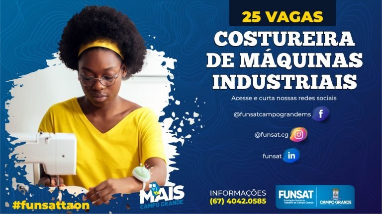 Entre as 1036 vagas disponíveis pela Funsat, nesta quinta-feira (8), 25 são para trabalhar como costureira de máquinas industriais, que irá costurar em ritmo de produção.