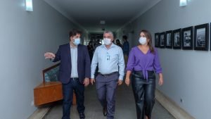 Secretário de Saúde José Mauro Filho (esquerda), ao lado do diretor do Pênfigo, Everton Martin e da vice-prefeita Adriane Lopes, em visita ao hospital.