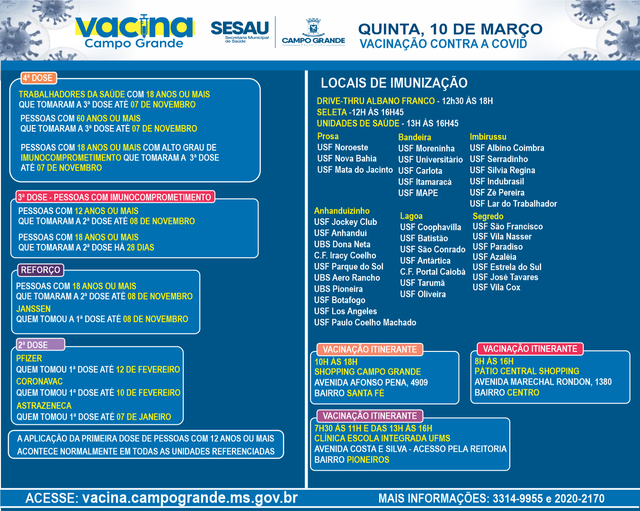Fique atento aos locais, horários e orientações pra vacinação de cada público.