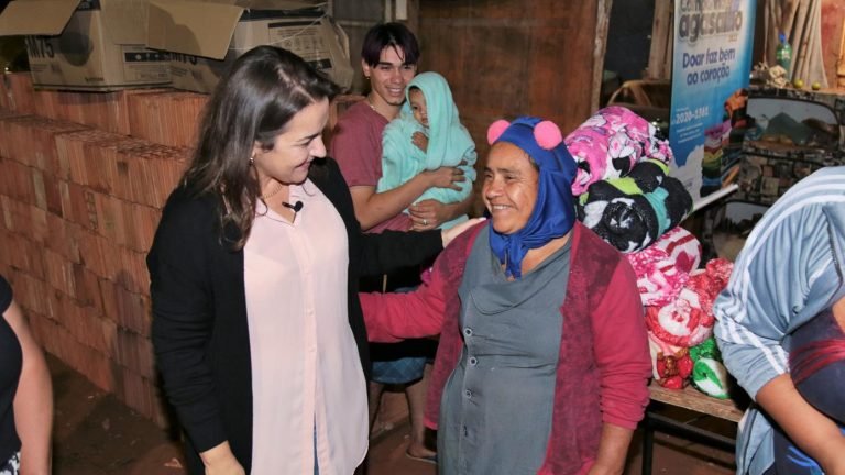 A prefeita de Campo Grande, Adriane Lopes, deu continuidade às entregas da Campanha do Agasalho nesta terça-feira (31) e levou cobertores para moradores dos bairros Santa Emília e Santo Eugênio. Desde o início das entregas, o Fundo de Apoio à Comunidade (FAC) já realizou a entrega de 5,3 mil cobertores. A meta para 2022 é dobrar as doações da campanha passada e chegar a 30 mil cobertores.