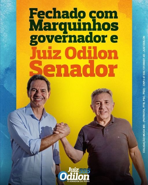 Então, muito prazer, sou o Juiz Odilon, e, junto com Marquinhos Trad, iremos construir um novo estado, com saúde, dignidade e segurança para o nosso povo. Mato Grosso do Sul precisa de mudança, para isso, contem conosco! OdilonSenadorDoPovo JuizOdilon MarquinhosGovernador viceviviane M55
