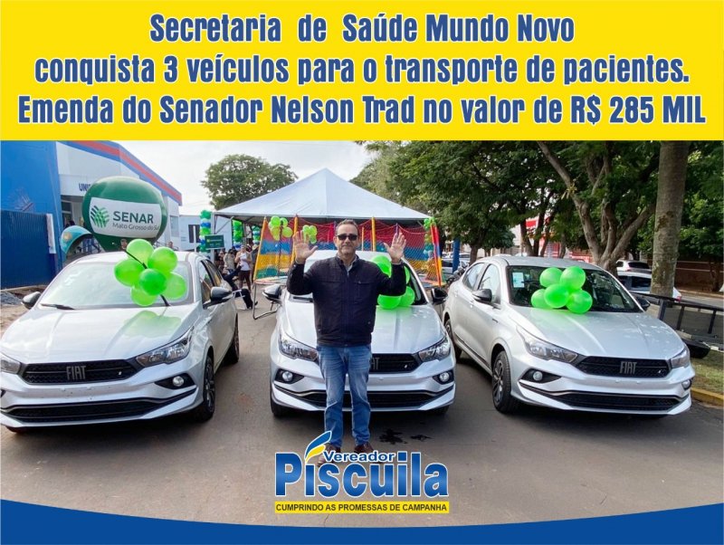 O senador Nelsinho Trad (PSD/MS) conquistou R$ 206 mil em recursos federais para aquisição de uma van destinada a atendimentos da saúde de Mundo Novo. Nesta manhã, o vereador Gerson Rezende de Oliveira – mais conhecido como Piscuila- (PSD) e o secretário de Saúde de Mundo Novo, Fábio Doná, receberam o transporte da concessionária, em Campo Grande, e enviaram o comunicado ao parlamentar. “Estamos muito felizes, ficamos meses aguardando pela entrega e, hoje, viemos buscar a van na capital”, informou o vereador Piscuila.