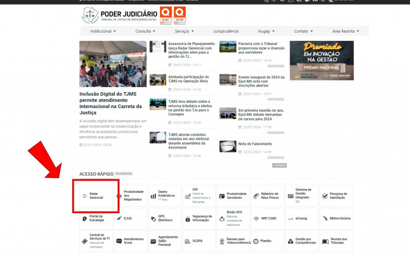 O acesso pode ser feito pelo Banner na Área Restrita ou diretamente por este link: https://www.tjms.jus.br/url/radar .