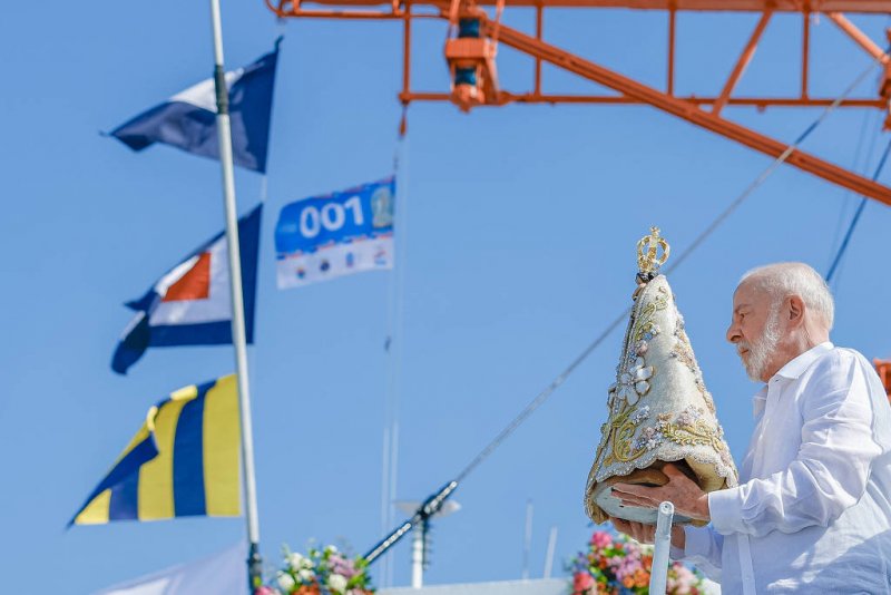 O presidente Luís Inácio Lula da Silva (PT) participou, na manhã deste sábado (12), da Romaria Fluvial, parte da programação do Círio de Nossa Senhora de Nazaré, em Belém. Ele esteve no navio da Marinha Garnier Sampaio, e carregou a Imagem Peregrina.