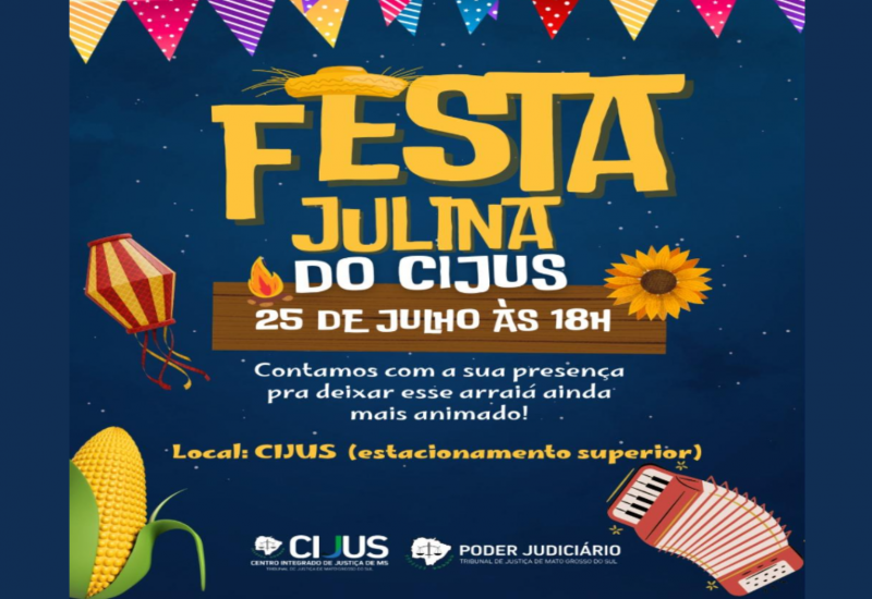 O Centro Integrado de Justiça de Mato Grosso do Sul (Cijus) realiza nesta sexta-feira, dia 25 de julho, a primeira edição de sua Festa Julina, voltada para magistrados, servidores e prestadores de serviços do Judiciário, bem como familiares e advogados em geral.