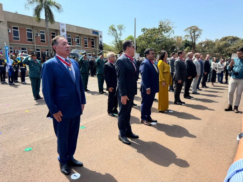 Durante a cerimônia, que contou com a presença do governador Eduardo Riedel e de diversas autoridades da segurança pública, o parlamentar recebeu a Medalha do Mérito e a Insígnia do Mérito Policial Militar, honrarias concedidas a personalidades que contribuem para o fortalecimento da instituição e para a valorização da segurança no Estado.