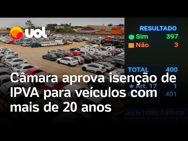 Câmara aprova isenção do IPVA para veículos com mais de 20 anos. A PEC 72/23, que prevê a isenção para carros de passeio, caminhonetes e veículos mistos, foi validada ontem à noite pelos deputados em duas votações. No primeiro turno, foram 412 votos favoráveis e quatro contrários. No segundo, o texto contou com o aval de 397 parlamentares e o voto contrário de outros três.