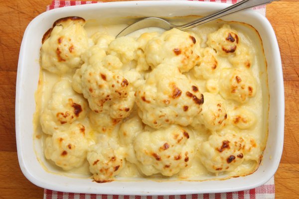 Cozinhe a couve-flor em água e sal até ficar “al dente”. Escorra, distribua em um refratário e reserve.