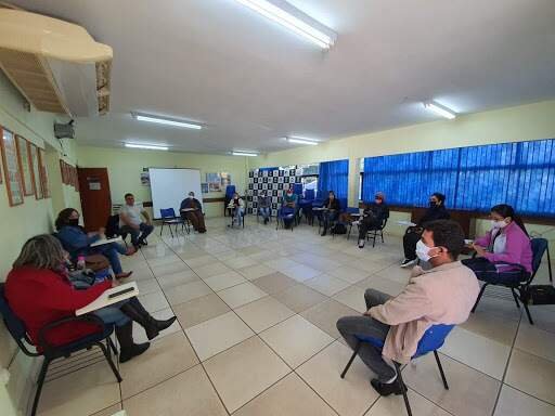 A preferência é para que as reuniões ocorram em áreas abertas e se não tiver esta opção, que o local tenha ventilação natural, com portas e janelas abertas. As mesas dos participantes devem ter uma distância de dois metros cada.