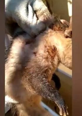 A suspeita é que tenha se machucado em briga com animais domésticos ou acidente veicular. Após o resgate, o animal foi entregue ao CRAS (Centro de Reabilitação de Animais Silvestres).