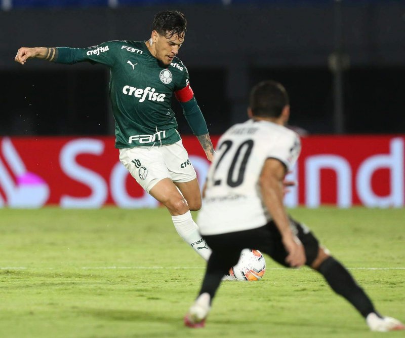 Quem abriu o placar aos 38 minutos do primeiro tempo foi o zagueiro Gustavo Goméz de cabeça. O jogador recebeu cobrança de escanteio perfeita de Gustavo Scarpa, apareceu livre na área e mandou para o funo da rede, sem chances para Martín Silva.