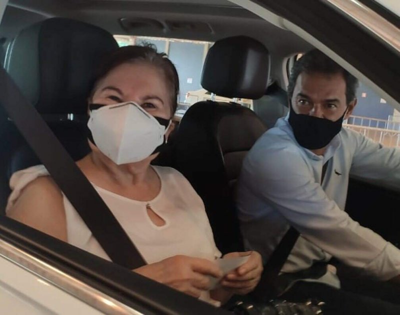 No dia de vacinar pessoas com 82 e 83 anos contra o novo coronavírus, o drive-thru instalado no Parque Ayrton Senna recebeu a mãe do prefeito de Campo Grande, Marquinhos Trad (PSD), Therezinha Mandetta Trad.