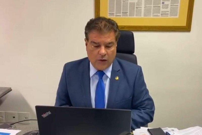 Senador Nelsinho Trad (PSD) durante a sessão virtual desta terça-feira (06). (Foto: Reprodução/Facebook)