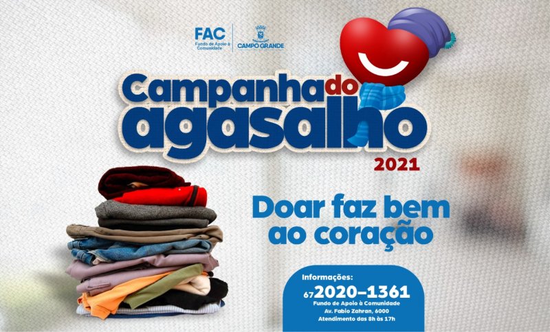 Com a proximidade de uma das épocas mais fria do ano, o Fundo de Apoio à Comunidade (FAC) lança nesta segunda-feira (17), a 5ª Campanha do Agasalho 2021. Como acontece todos os anos, o foco é atender pessoas que vivem em situação de vulnerabilidade social. As doações podem ser feitas por qualquer pessoa, empresa ou comunidade, até o dia 31 de julho.