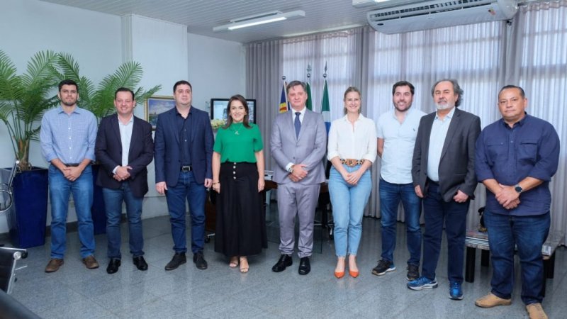 Acompanham a reunião os membros da CKTR Serviços André Cortez, diretor operacional, Milton Bento, gerente comercial e Marco Antônio Pereira Dias, coordenador comercial, o empresário Filipe Trindade, além dos secretários municipais Adelaido Vila da Sidagro, Catiana Sabadin da Sugepe e Antônio Lacerda da secretario de Governo.