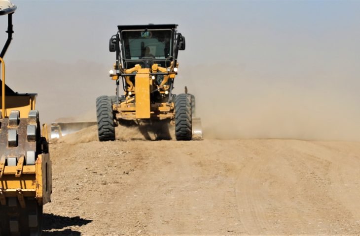 Obra de revestimento primário na estrada de acesso ao Forte Coimbra