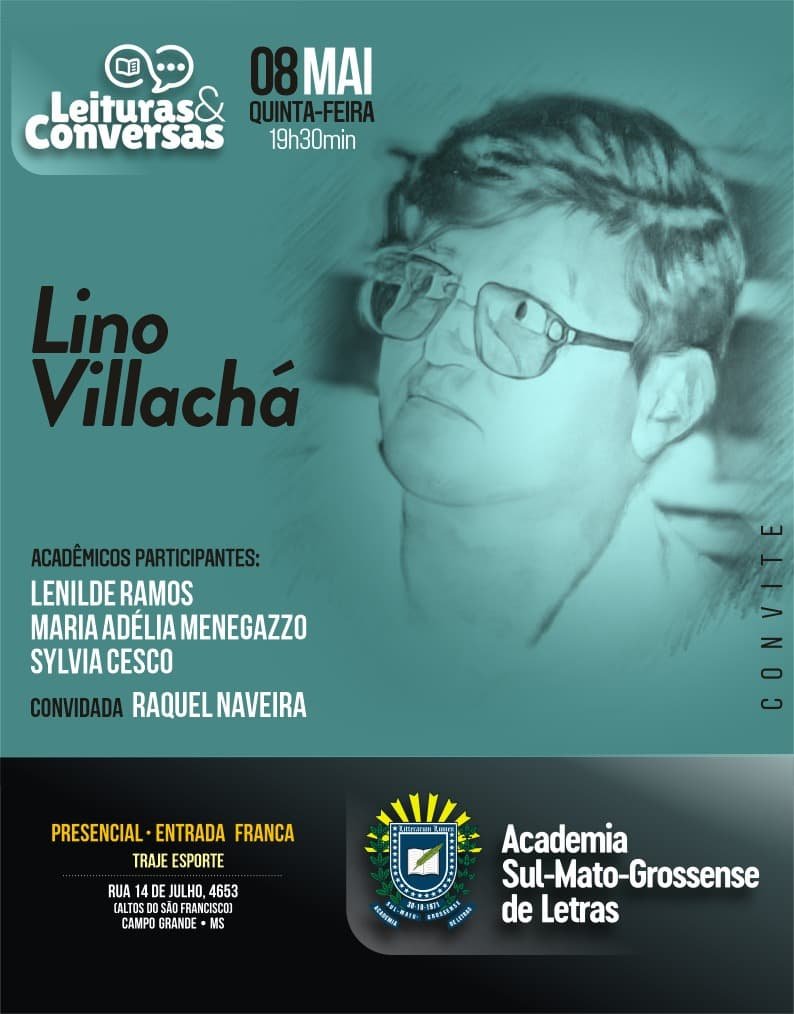 Autor de uma obra que reflete trajetória literária profundamente marcada por contextos de isolamento e resistência, o escritor sul-mato-grossense Lino Vilachá será o tema das Leituras e Conversas que a Academia Sul-Mato-Grossense de Letras realiza, nesta quinta-feira, dia 08, com entrada franca no auditório da instituição, às 19h30min. Coordenado na ASL pelas imortais Lenilde Ramos, Maria Adélia Menegazzo e Sylvia Cesco, esta edição, após leituras de um escritor nacional e um estrangeiro, aborda um literato regional.
