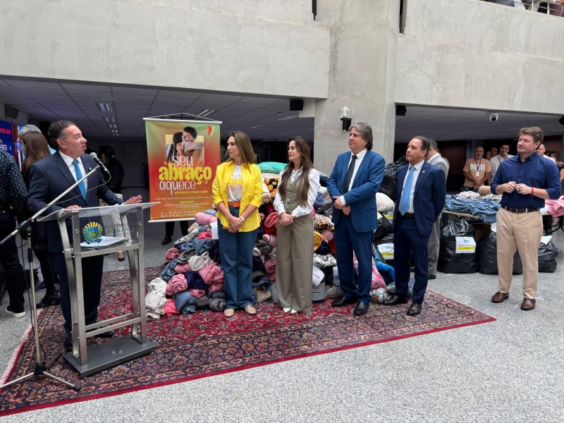 A Assembleia Legislativa de Mato Grosso do Sul (ALEMS) realizou, na manhã desta quinta-feira (15), a entrega simbólica de mais de 1.600 peças de agasalhos e cobertores arrecadadas por deputados e servidores para a campanha “Seu Abraço Aquece”, promovida pelo Governo do Estado. A ação tem como objetivo ajudar famílias em situação de vulnerabilidade social durante o período de frio.
