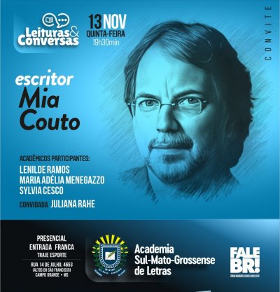 A Academia Sul-Mato-Grossense de Letras (ASL) realizará nesta quinta-feira, 13 de novembro, às 19h30, a última edição de 2025 do programa “Leituras & Conversas”, com foco na obra do escritor moçambicano Mia Couto. O evento será presencial, com entrada gratuita, no auditório da instituição, localizado na Rua 14 de Julho, nº 4653, bairro Altos do São Francisco, em Campo Grande (MS).