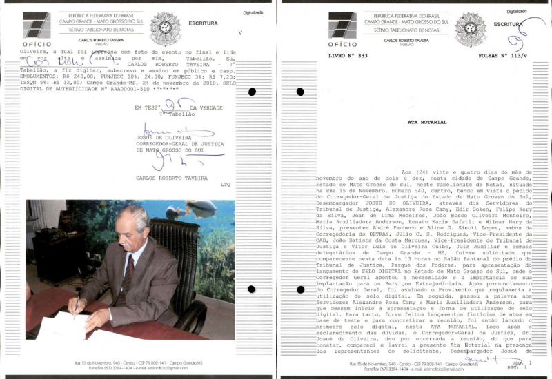 Na mencionada ata, foi inserido o primeiro Selo Digital de Autenticidade do Estado de Mato Grosso do Sul, de número AAA00001-510, marco inaugural da transição do modelo físico para o digital.