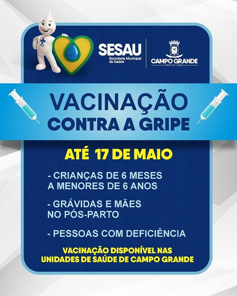 A terceira fase da Campanha de Vacinação contra a Gripe acontece nas 71 unidades de saúde de Campo Grande.